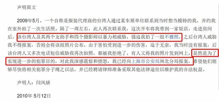 闫凤娇当年的声明