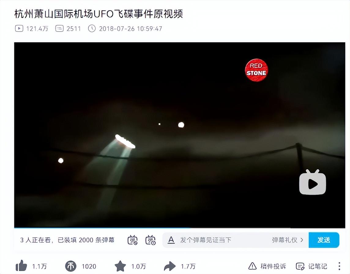 除了这两张照片外,还有网上流传的一段百万播放量的视频,标题是【杭州萧山国际机场UFO飞碟事件原视频】