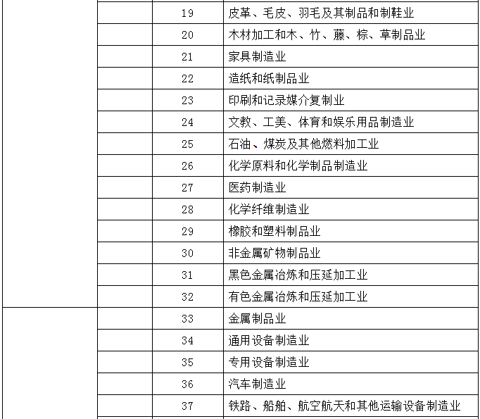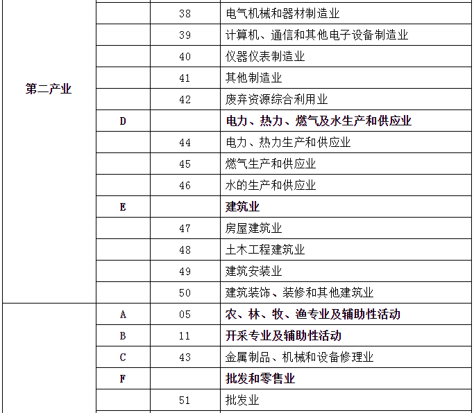 由上表可知,第二产业大致包含四大行业,即采矿业(B)、制造业(C)、电热气水生产和供应业(D)、建筑业(E)。为什么讲大致呢?因为,采矿业中的“开采专业及辅助性活动”(11大类)、制造业中的“金属制品、机械和设备修理业”(43大类)属于第三产业,而不是第二产业。尽管如此,由于43大类占比较小,还是可以认为制造业是第二产业的子集。那工业又指的是什么呢?