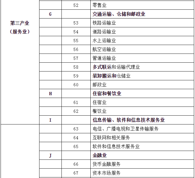 劳动者,不管是脑力劳动还是体力劳动,都会归属一个行业。关于国民经济行业的划分,GB/T 4754-2017有规定,包括分类和代码表,具体分为20门类(A~T)、97大类、473中类、1381小类,非常详尽。以此为基础,国家统计局又进行了“合并同类项”,发布《三次产业划分规定》,也就是通常所讲的第一、第二、第三产业。对应2017版的GB/T 4754,2018年发布最新的三次产业划分表如下: